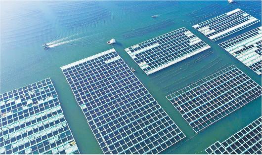 9月26日,養殖工人在榮成市桑溝灣海上養殖區作業,一派繁忙景象。榮成市是國家級水產健康養殖和生態養殖示范區,全市海水養殖面積達56萬余畝。