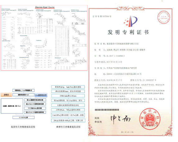 幾十年來,貝類毒素危害對我國國民健康、國際貿易和產業發展造成極為嚴峻的不利影響。貝類毒素種類多且具區域、品種和季節差異特征,因此高通量篩查及確證技術是摸清我國近海貝類中毒素殘留風險、科學構建防控技術的首要任務,也是國際貝類毒素研究的技術難點之一。黃海水產研究所水產品質量安全形成機理與過程控制團隊率先突破了復雜貝類基質前處理技術局限性,有效解決了基質干擾效應,將超痕量毒素的提取效率由不足50%提升到85%以上;自建貝類毒素非定向篩查信息采集方法,實現了貝類中游離態和結合態貝類毒素組分的高精準解析。綜合運用多級質譜高靈敏檢測與鑒定方法,建立數據依賴性采集模式,將貝類毒素數據庫、精確分子質量、多能量全掃描二級譜庫等信息納入判定依據,通過匹配權重綜合識別判定,實現多毒素組分標準化的精確確證。已建立的120多種貝類毒素組分的質譜譜庫,是我國目前覆蓋范圍最廣、技術能力最強的貝類毒素高通量篩查與確證方法平臺,顯著提升了我國貝類毒素風險的主動防控能力。