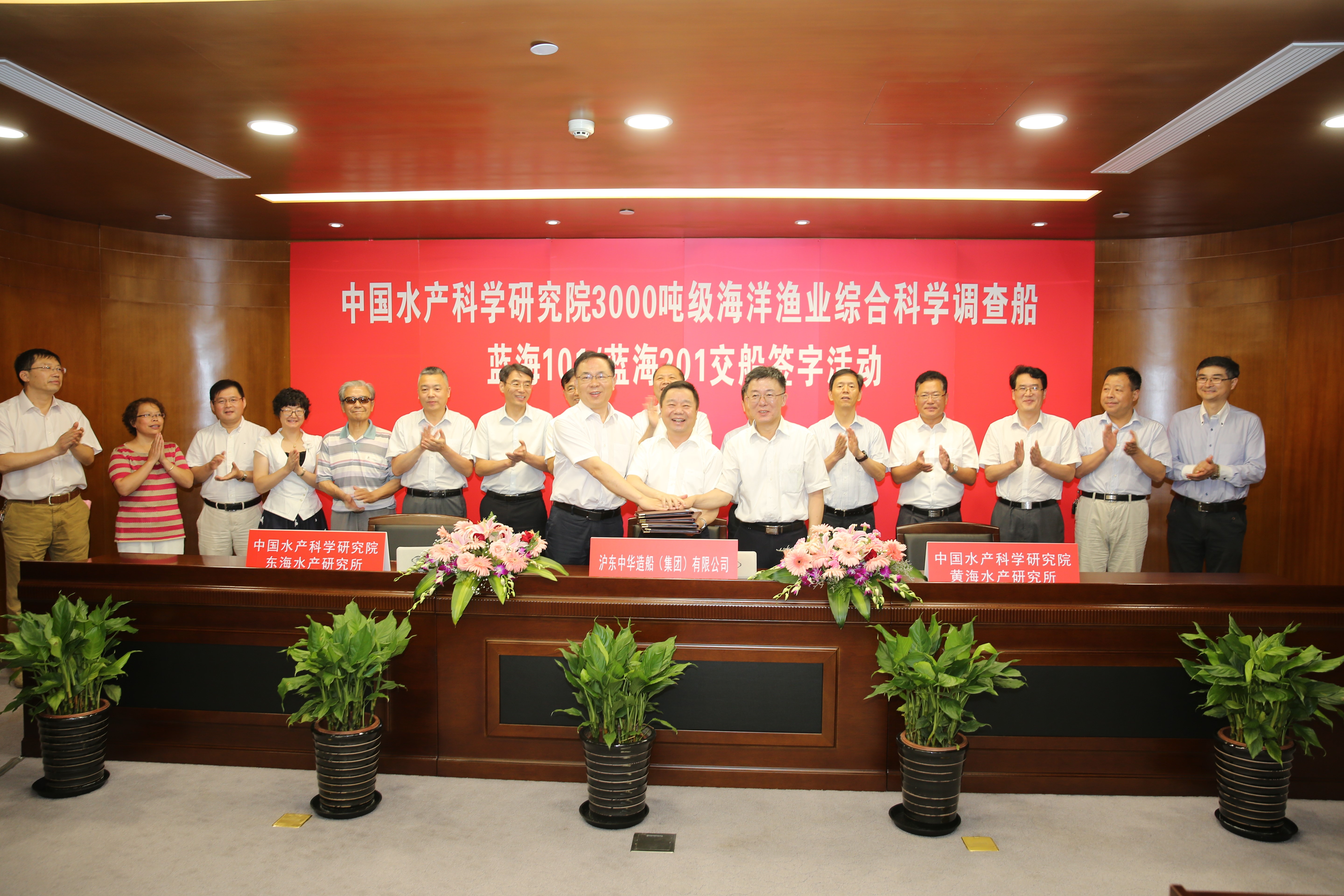 6月28日,黃海水產(chǎn)研究所3000噸級海洋漁業(yè)綜合科學調(diào)查船“藍海101”號(與東海水產(chǎn)研究所“藍海201”號為“一型兩船”)在上海舉行交船簽字活動。這標志著我國最大的兩艘海洋漁業(yè)綜合科考船正式交付使用,將以優(yōu)良的船舶性能和強大的科考功能服務海洋漁業(yè)資源調(diào)查。農(nóng)業(yè)農(nóng)村部計劃財務司建設項目處處長張野田,農(nóng)業(yè)農(nóng)村部長江流域漁政監(jiān)督管理辦公室副主任董金和,上海市農(nóng)業(yè)農(nóng)村委員會副主任王國忠,中國船級社上海分社總經(jīng)理孟令毅,中國水產(chǎn)科學研究院院長王小虎、副院長崔國輝,黃海水產(chǎn)研究所所長金顯仕、副所長辛福言,東海水產(chǎn)研究所所長莊平、副所長高建芳等所領導,滬東中華造船(集團)有限公司總經(jīng)理陳軍等出席簽字活動,中國水產(chǎn)科學研究院、黃海水產(chǎn)研究所及東海水產(chǎn)研究所等相關部門負責人等參加了簽字活動。