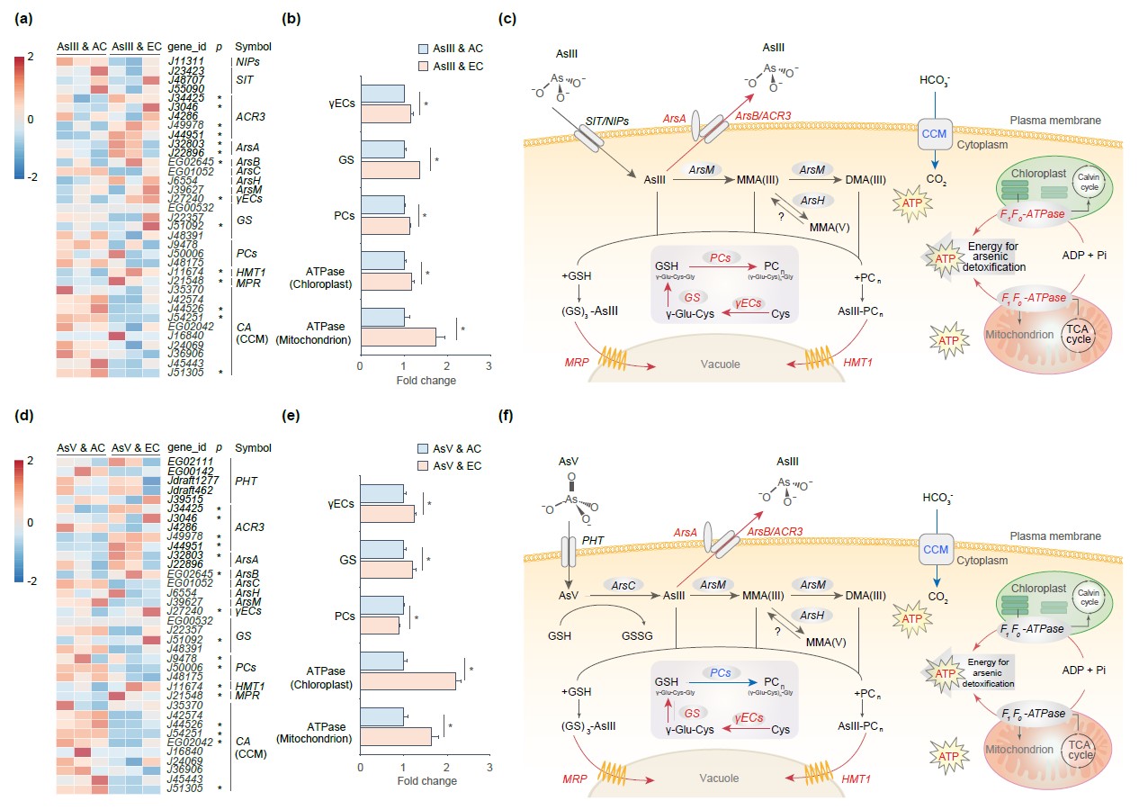 圖3. 長期酸化條件下硅藻無機砷代謝調控機制
