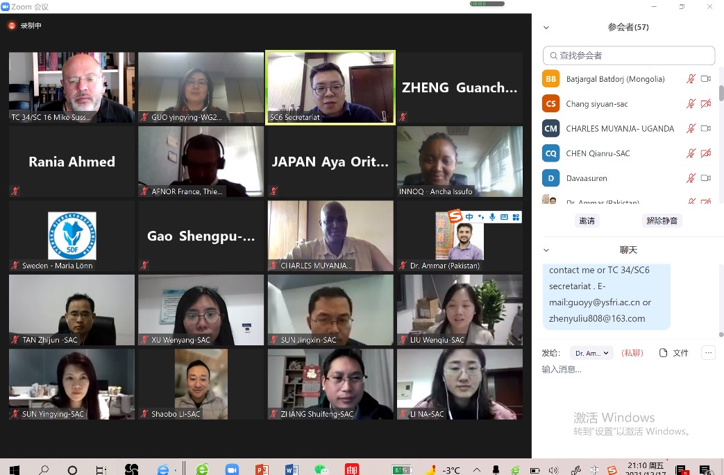 ISO標準申報規范且立項程序復雜。此前在2021年12月16日至17日召開的ISO/TC34/SC6第25屆年會上,來自中國、美國、俄羅斯、法國、伊朗、蒙古國、瑞典等15個成員國家共80余名代表通過視頻會議,對9項國際標準新項目提案進行立項審議,我所提出的這2項標準提案得到各國代表的關注與支持。在ISO/TC34/SC6秘書處積極推動下,經過27個P-成員國的磋商、論證、投票等程序,最終獲得立項。