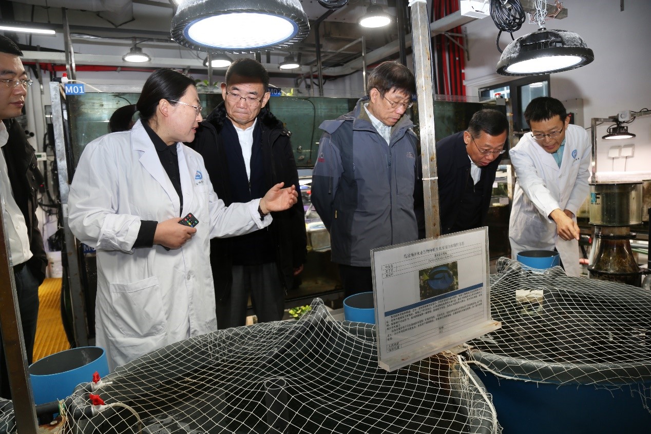 11月24日,國務院國資委國有重點大型企業監事會原主席楊堅,全國政協委員、中國農業科學院原黨組書記張合成,中國遠洋漁業協會會長、農業農村部漁業漁政管理局原局長張顯良等一行4人到國家海洋漁業生物種質資源庫(以下簡稱“資源庫”)調研。中國工程院院士唐啟升,中國水產科學研究院黃海水產研究所副所長葉乃好、榮小軍、原副所長辛福言及相關部門負責人員接待了調研組一行。