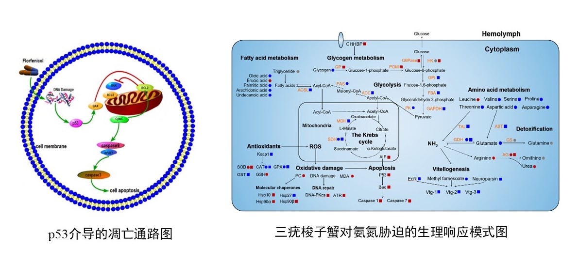 解析蝦蟹對(duì)環(huán)境脅迫因子的生態(tài)適應(yīng)機(jī)制,為蝦蟹抗逆品種的培育提供科學(xué)依據(jù)。查明氨氮、鹽度、堿度和溫度等環(huán)境因子脅迫能顯著降低蝦蟹非特異性免疫和抗氧化系統(tǒng)功能,造成鰓和肝胰腺組織損傷,機(jī)體可通過(guò)p53介導(dǎo)的線粒體通路引發(fā)細(xì)胞凋亡,以適應(yīng)環(huán)境變化;三疣梭子蟹通過(guò)激活鳥(niǎo)氨酸-尿素等途徑進(jìn)行信號(hào)傳導(dǎo)響應(yīng)氨氮脅迫,谷氨酸脫氫酶去氨化和谷氨酰胺合成是解毒重要途徑;發(fā)現(xiàn)HSP10和HSP40等分子伴侶在脊尾白蝦高溫耐受中發(fā)揮重要作用;脊尾白蝦可耐受10 mmol/L的中等程度碳酸鹽堿度脅迫,揭示其鰓片間細(xì)胞數(shù)目顯著增多,并趨向于分化為離子細(xì)胞的適應(yīng)機(jī)制。研究結(jié)果為蝦蟹抗逆良種選育提供理論支持。