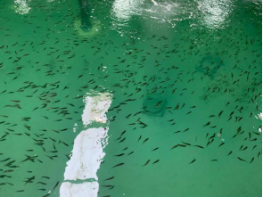 驗收專家聽取了課題組的工作匯報,查閱了相關實驗記錄,查看了黃條鰤育苗池塘、車間的親魚及苗種情況,并進行了現場隨機取樣計數與測量。課題組現保有4-6齡黃條鰤成熟親魚368尾;建立起黃條鰤人工調控性腺發育成熟達到自然產卵技術;采用池塘和工廠化接力育苗技術方法,共培育出平均全長4.8- 6.8cm的黃條鰤苗種60.8萬尾,實現了黃條鰤苗種的規模化生產。