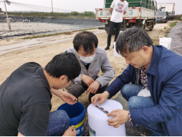 專家現場測量抽樣苗種