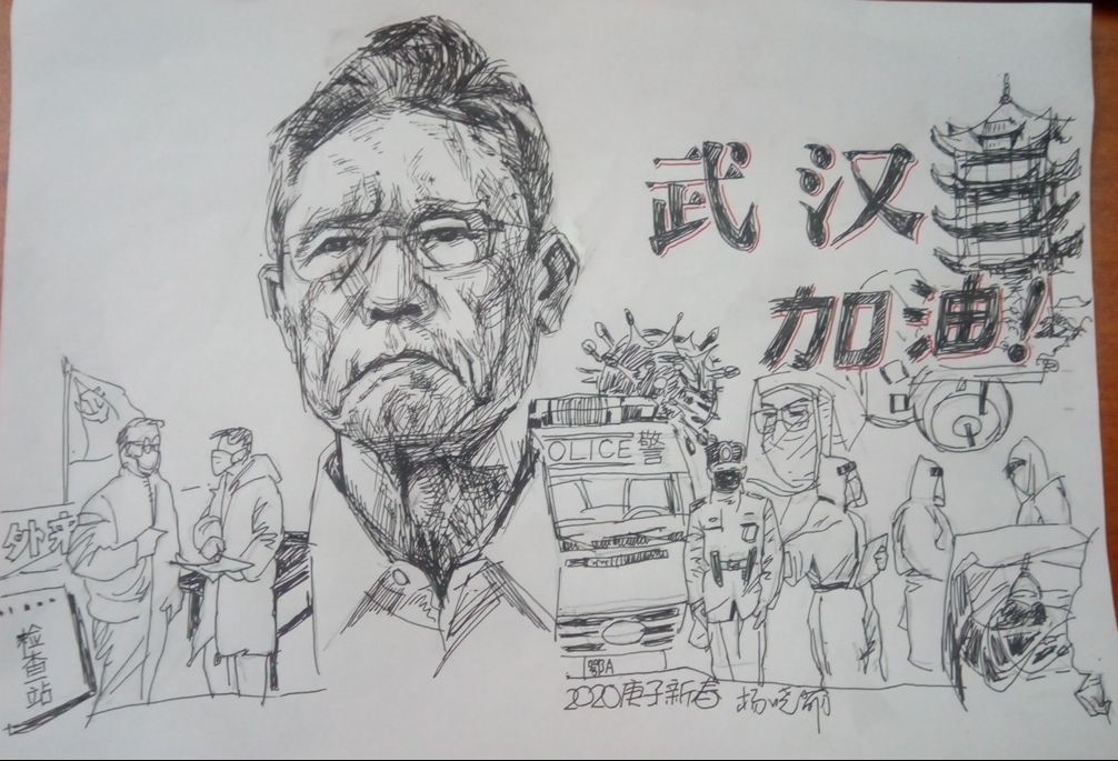 在疫情防控最吃勁的關鍵階段,全國上下貫徹落實習近平總書記的要求,堅定必勝信念,不獲全勝決不輕言成功。辦公室信息支部黨員楊曉萌在做好本職工作的同時,發揮特長,用自己的滿腔熱情,創作了《戰疫凱歌》快板作品,宣傳防控知識,鼓舞抗“疫”決心,堅定勝利信心,素描的《武漢加油》簡筆畫展現了以鐘南山院士為代表的醫護人員戰斗在一線、地方聯防聯控和堅強不屈的英雄城市武漢,以筆墨為槍盾,用快板為劍戟,劈開云霧,以“藝”戰“疫”!