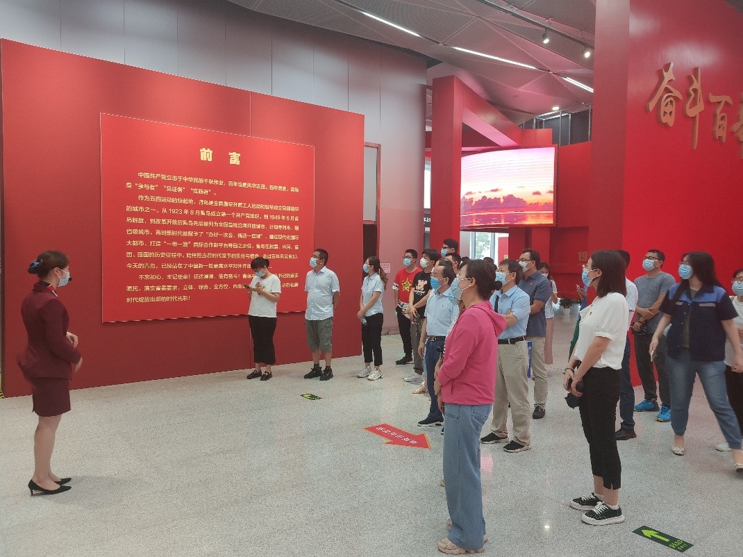 在工作人員的引領(lǐng)下,支部黨員按照“序廳 百年風華”“第一篇 日出東方開天地”“第二篇 火紅年代啟征程”“第三篇 改革開放涌春潮”“第四篇 復興偉業(yè)繪藍圖”五個展廳順序,通過聆聽引領(lǐng)員的詳細講解,并結(jié)合觀看大量的圖片、實物、影像、文字說明等資料展示,認真學習了中國共產(chǎn)黨救國、興國、富國、強國的百年奮斗史,深切體會到青島在中國共產(chǎn)黨領(lǐng)導下取得的翻天覆地的變化。