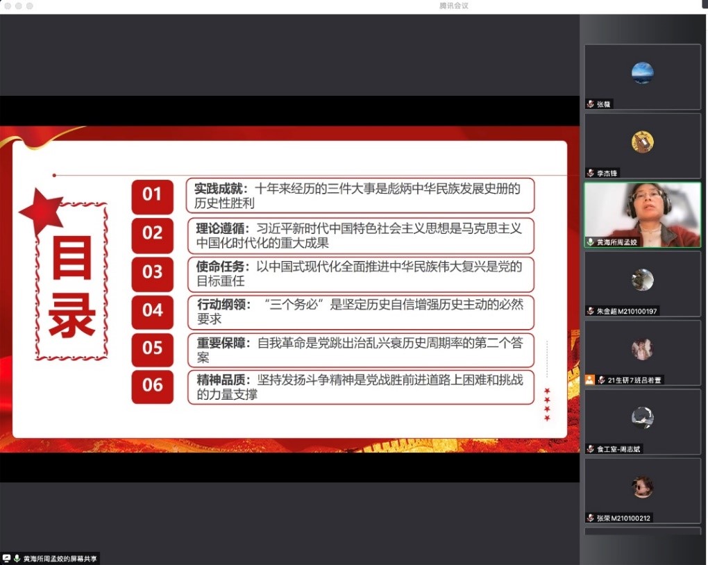 12月12日,中國水產(chǎn)科學(xué)研究院黃海水產(chǎn)研究所研究生支部線上召開“學(xué)習(xí)宣傳貫徹黨的二十大精神”專題學(xué)習(xí)會,支部全體黨員參會,會議由支部書記周孟姣同志主持。會議開始前,全體黨員默哀1分鐘,集中觀看《江澤民偉大光輝的一生》,極其沉痛地悼念敬愛的江澤民同志。