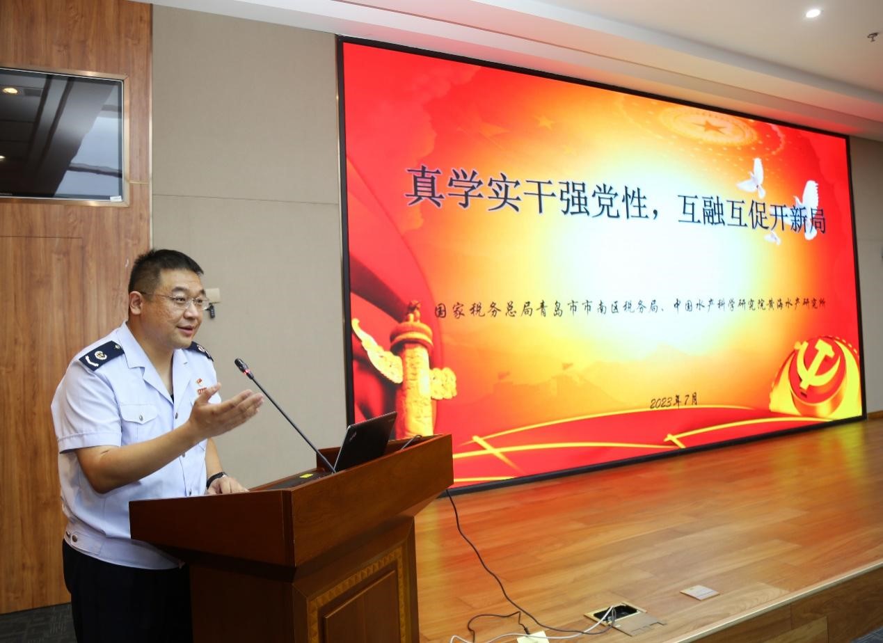 榮小軍副所長對國家稅務(wù)總局青島市市南區(qū)稅務(wù)局各位黨員同志的到來表示歡迎,感謝市南區(qū)稅務(wù)局一直以來對黃海水產(chǎn)研究所財稅工作提供的支持和幫助,并簡要介紹了我所人員構(gòu)成、科研成果、科研平臺、科研項目等方面的基本情況。他表示,黃海水產(chǎn)研究所和市南區(qū)稅務(wù)局是黨組織聯(lián)建單位,希望通過本次聯(lián)建,進(jìn)一步提高廣大黨員同志“學(xué)思踐悟”的積極性,促進(jìn)各黨支部更加深入的交流,進(jìn)而達(dá)到黨建和業(yè)務(wù)互融互促的目的。