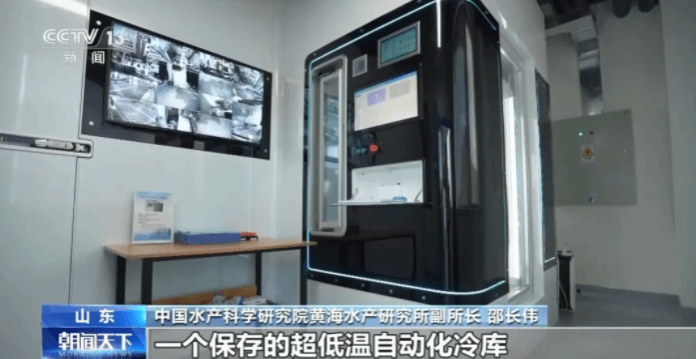 中國水產(chǎn)科學研究院黃海水產(chǎn)研究所副所長 邵長偉:這是我國自主研發(fā)的,也是國家第一臺保存海洋漁業(yè)生物資源的超低溫自動化冷庫。目前的保存容量可以達到40萬份,基本上可以滿足未來5到10年的保存需求。目前這里保存的主要是遺傳資源。