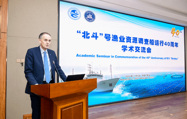 11月5日,“北斗”號漁業資源調查船運行40周年學術交流活動在青島成功舉辦。活動總結回顧了“北斗”號漁業資源調查船在海洋漁業科學研究領域的輝煌歷程,并深化了中挪兩國在漁業科技領域的合作與交流。挪威駐華大使館發展參贊尤亞,挪威海洋研究所戰略所長彼得·莫斯比·霍根,山東省農業農村廳總農藝師郭鵬、青島市海洋發展局總工程師張惠珺、青島市科學技術協會副主席柳本才、青島市歸國華僑聯合會黨組書記張毅等相關部門領導出席活動。