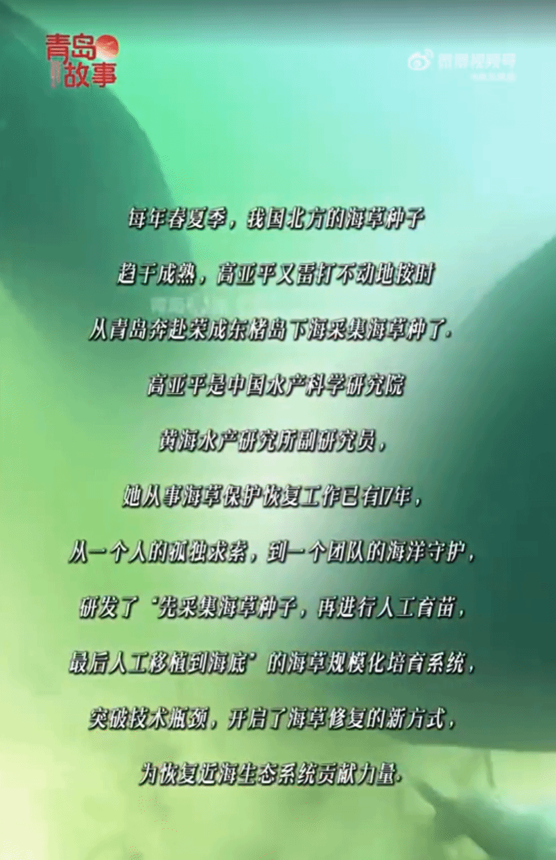 從光禿禿沙灘到成片草床,青島女博士海底種草,默默耕耘17年,為海洋做貢獻