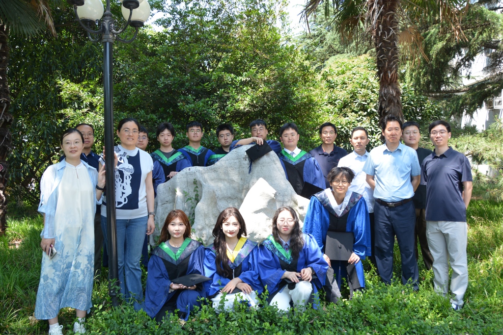王印庚(右三)和今年畢業的部分碩士研究生合影