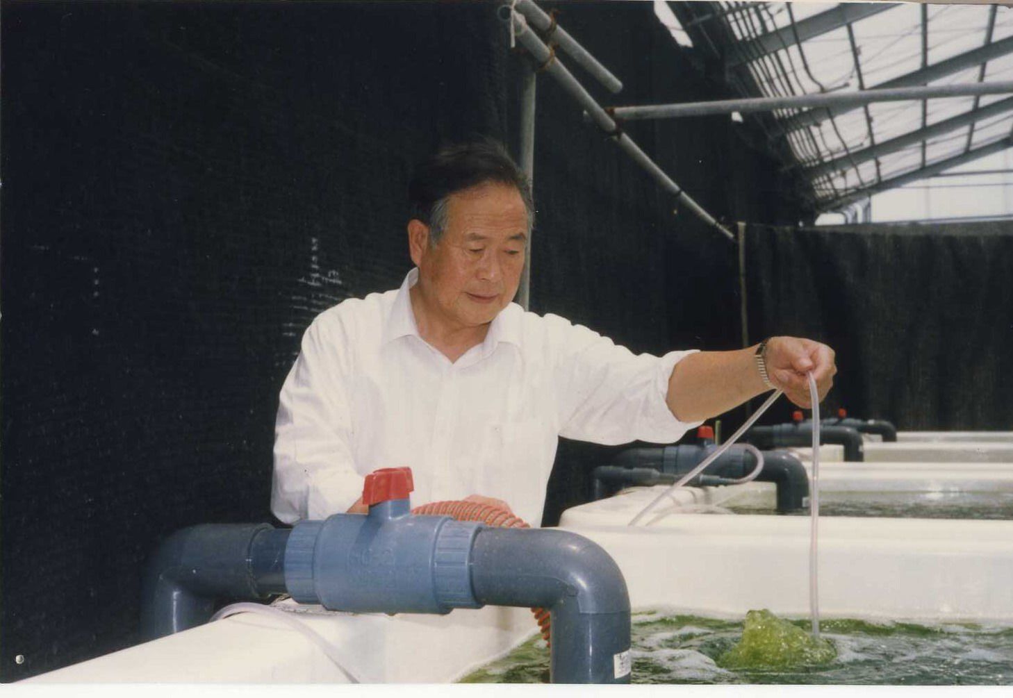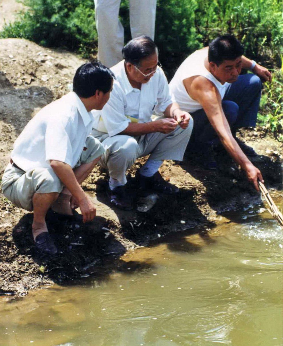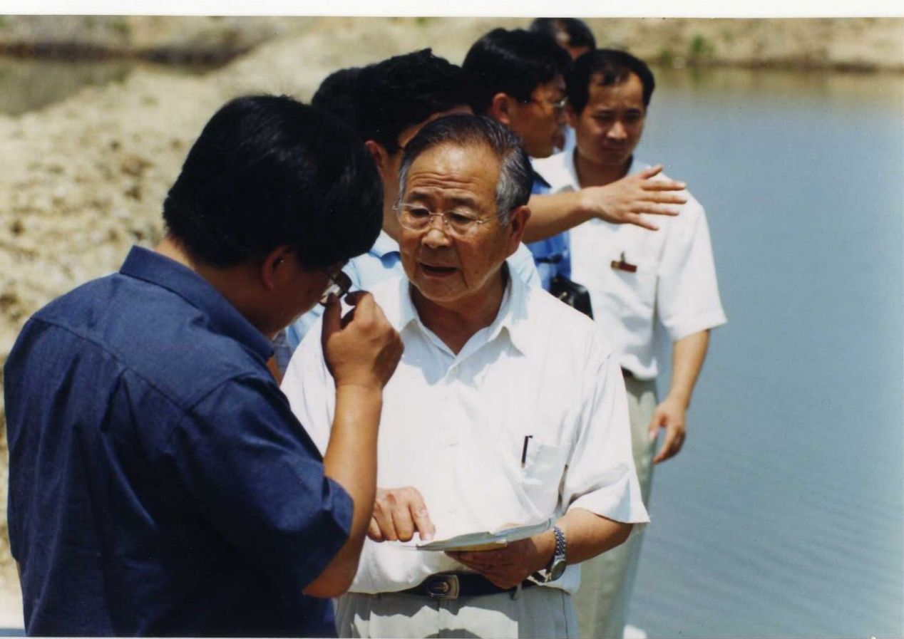 1999年趙院士現(xiàn)場(chǎng)指導(dǎo)養(yǎng)蝦技術(shù)員
