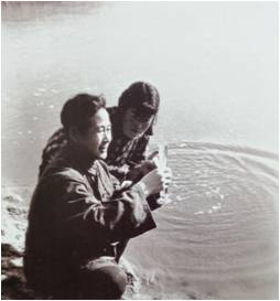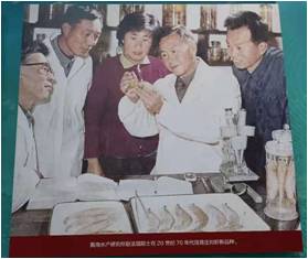 20世紀70年代趙法箴(右二)與同事觀察對蝦性腺發育情況