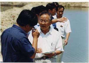 1999年趙法箴院士(前排右一)現場培訓養蝦技術員